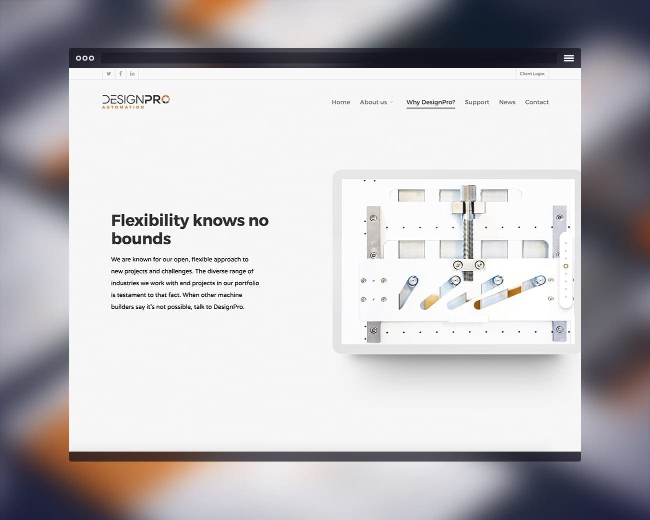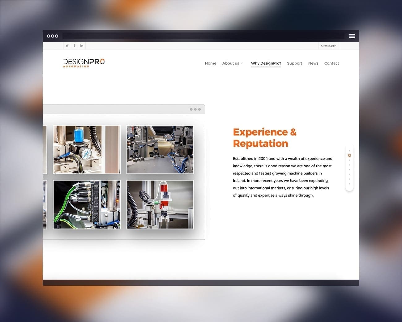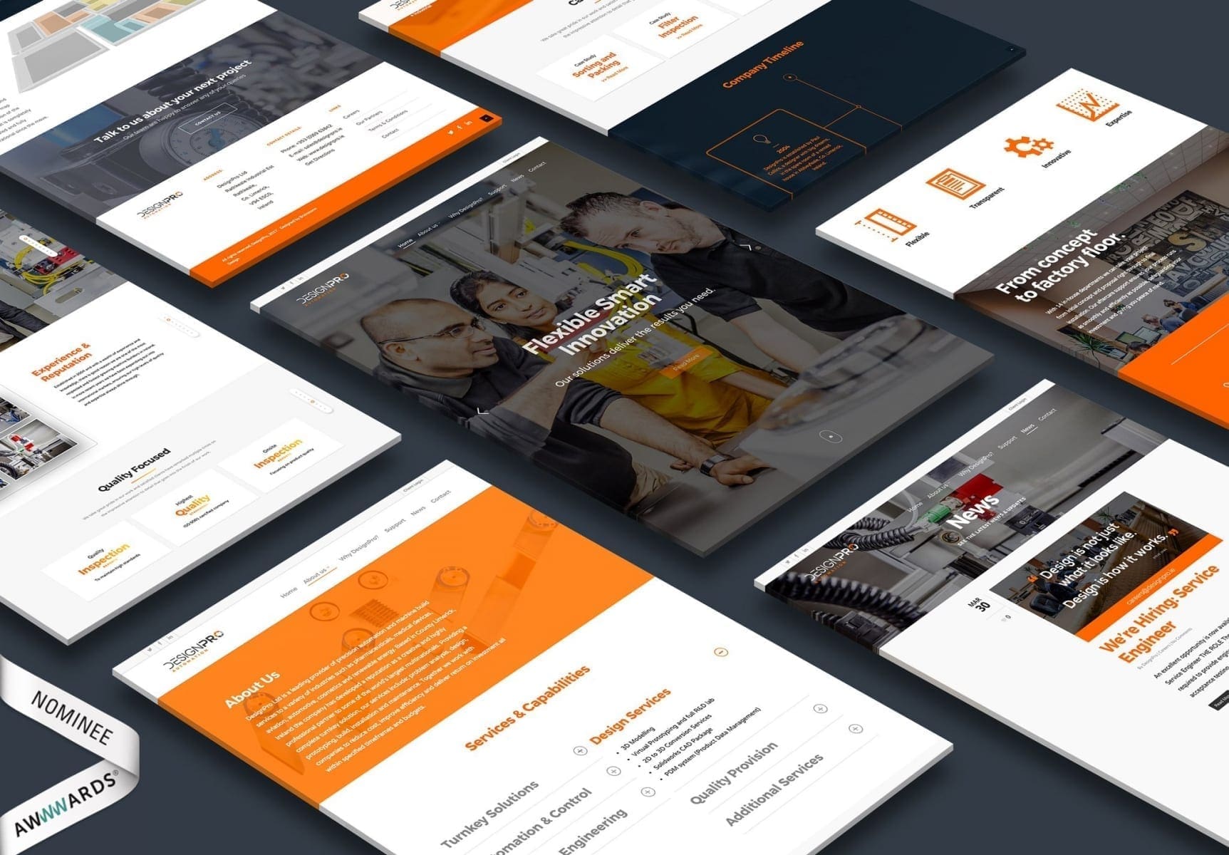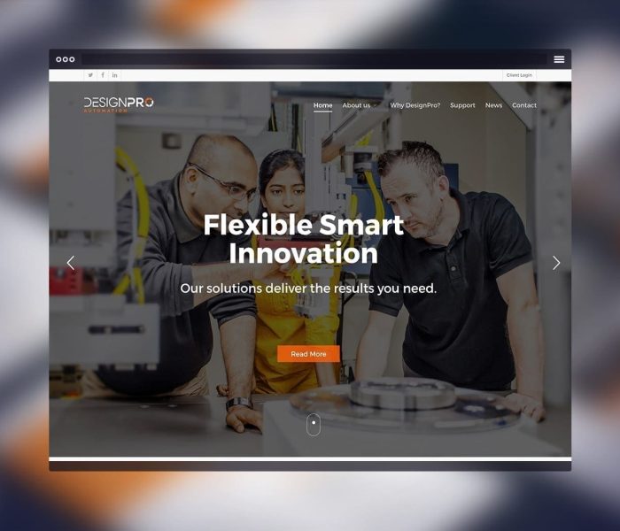 As a partner to the world’s largest multinationals, DesignPro required more than a brochure site; they needed a functional tool. The challenge was to adhere strictly to rigorous corporate brand guidelines while introducing modern responsive behaviours. Furthermore, the lack of a centralized system for clients to track the progress of complex machine builds created communication friction that needed to be resolved through a bespoke portal solution.